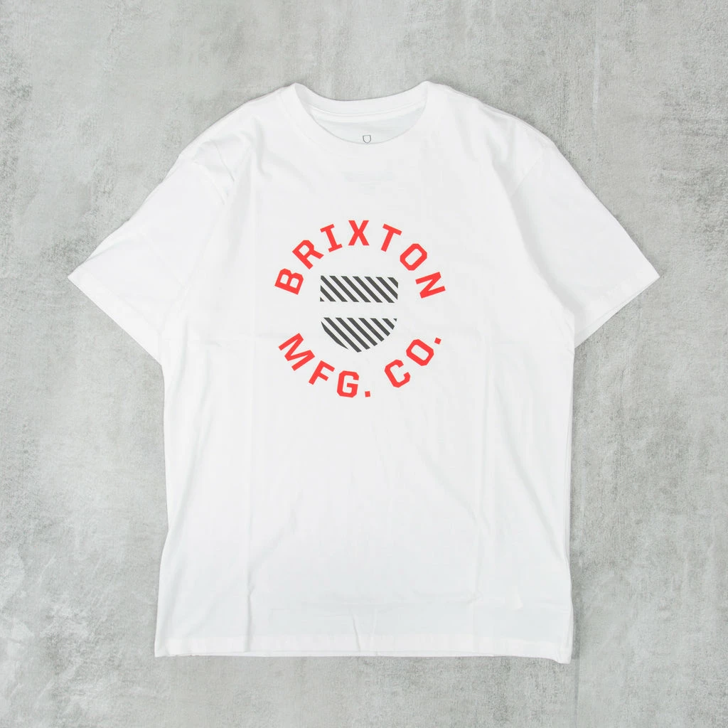 Brixton Crest Shield Tailored S/S Tee in White – Made from 100% cotton the Crest Shield S/S Tee in a tailored fit, Built to be easily paired and for great comfort.
