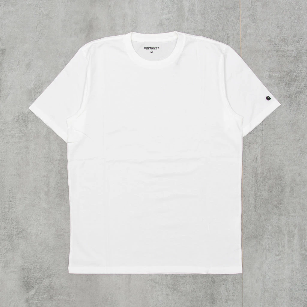 The Carhartt Base Tee in White is a simple t-shirt constructed from 100% cotton jersey. Features a printed Carhartt ‘C’ logo on the left sleeve.