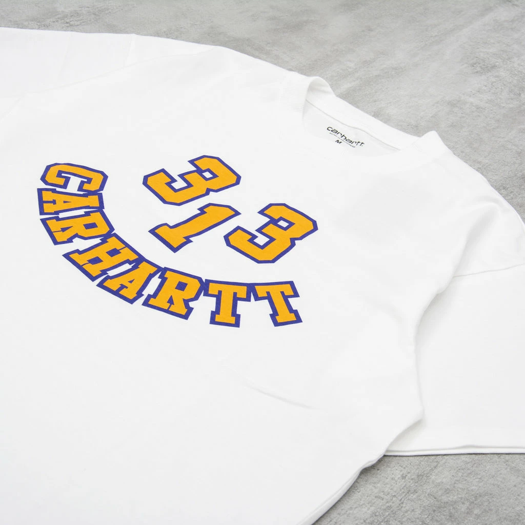 Carhartt WIP 313 Smile Tee – White oversized fit and featuring a sporting touch to the design.
