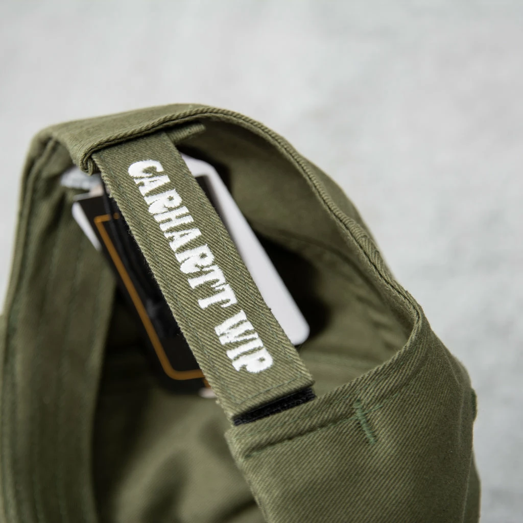 Carhartt WIP Aces Cap – a six panel style with a firm, flat peak. Made of cotton twill, the cap has been garment-washed to give the fabric a softer feel. It features graphic embroidery on the front and an adjustable strap on the back to ensure a perfect fit.