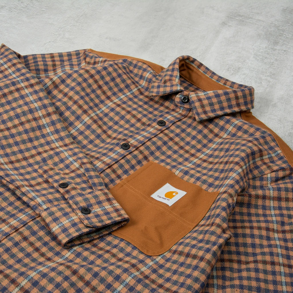 Carhartt WIP Asher Shirt – cut in a loose fit from checked wool and polyester tweed, which is a fabric that has been yarn-dyed for a longer lasting, allover color. The style features a contrasting chest pocket and back yoke in Dearborn Canvas and is finished with a woven Square Label on the front.