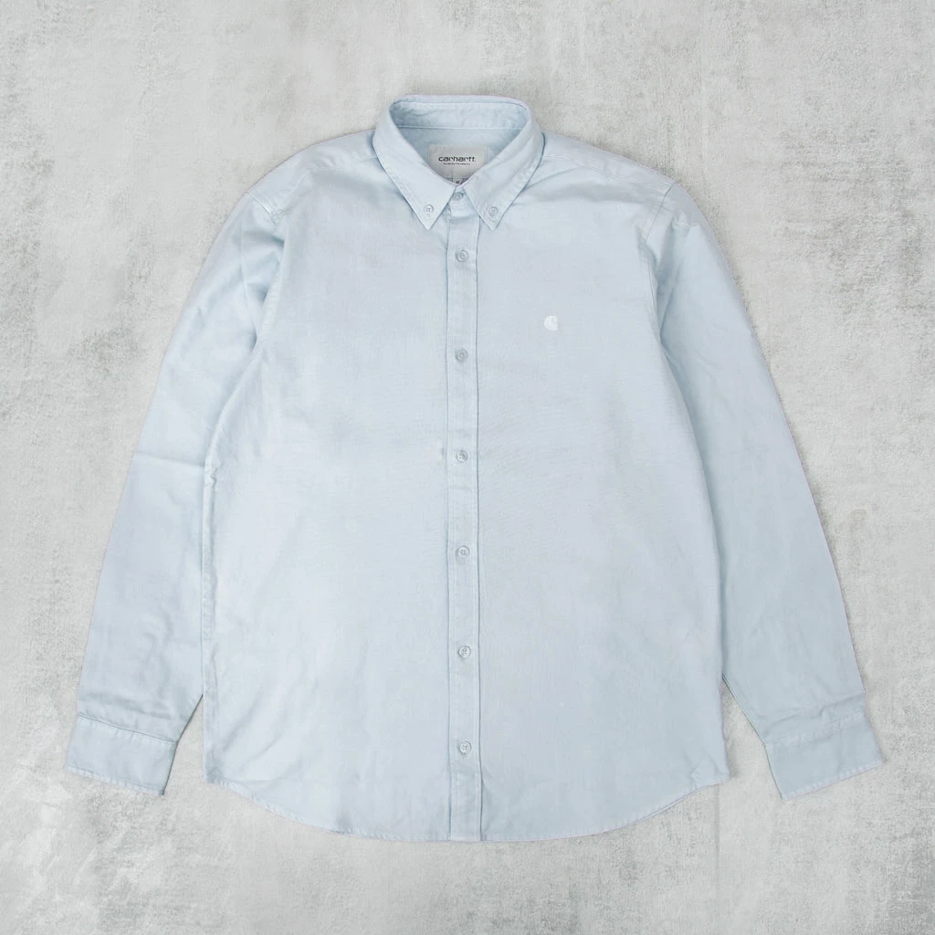 Carhartt WIP Bolton L/S Shirt – a classic button-down style and has been woven from Oxford cotton in a regular fit, and features a curved hem. It has been garment-dyed resulting in a subtle variation in color throughout and a softer feel. It is finished with a button-down collar and subtle embroidered Carhartt WIP ‘C’ Logo at the chest.