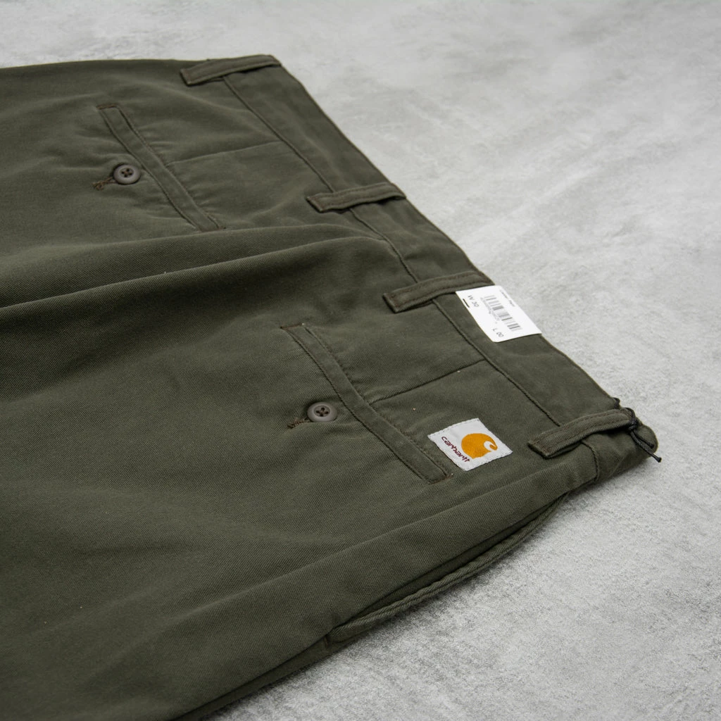 The Carhartt Calder Pant is a loose tapered fit, in a soft cotton/polyester twill. All pants are one cropped leg length.