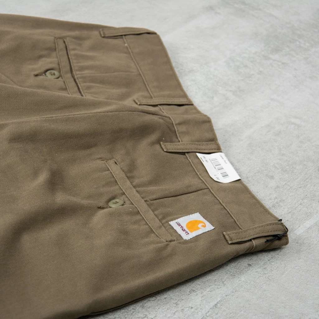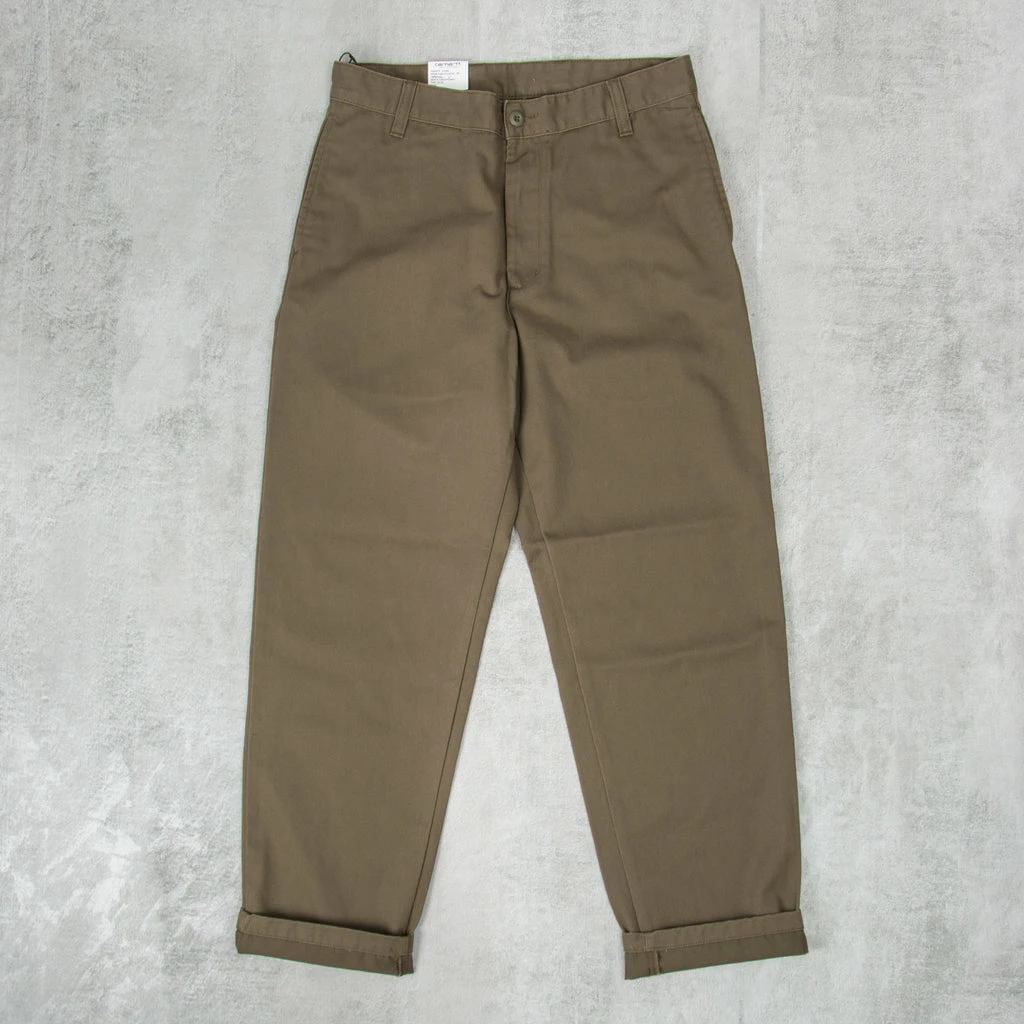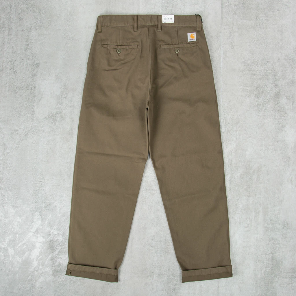 The Carhartt Calder Pant is a loose tapered fit, in a soft cotton/polyester twill. All pants are one cropped leg length.