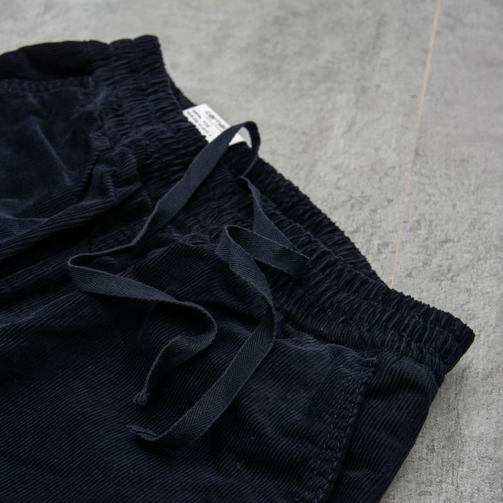 The Carhartt WIP Flint Pant is constructed from 15 wales ‘ford’ corduroy, meaning it is a thick-ridged, robust cord fabric. The garment features a drawcord, elasticated waistband and inseam insert for maximum comfort. Zip fly. Regular tapered fit.
