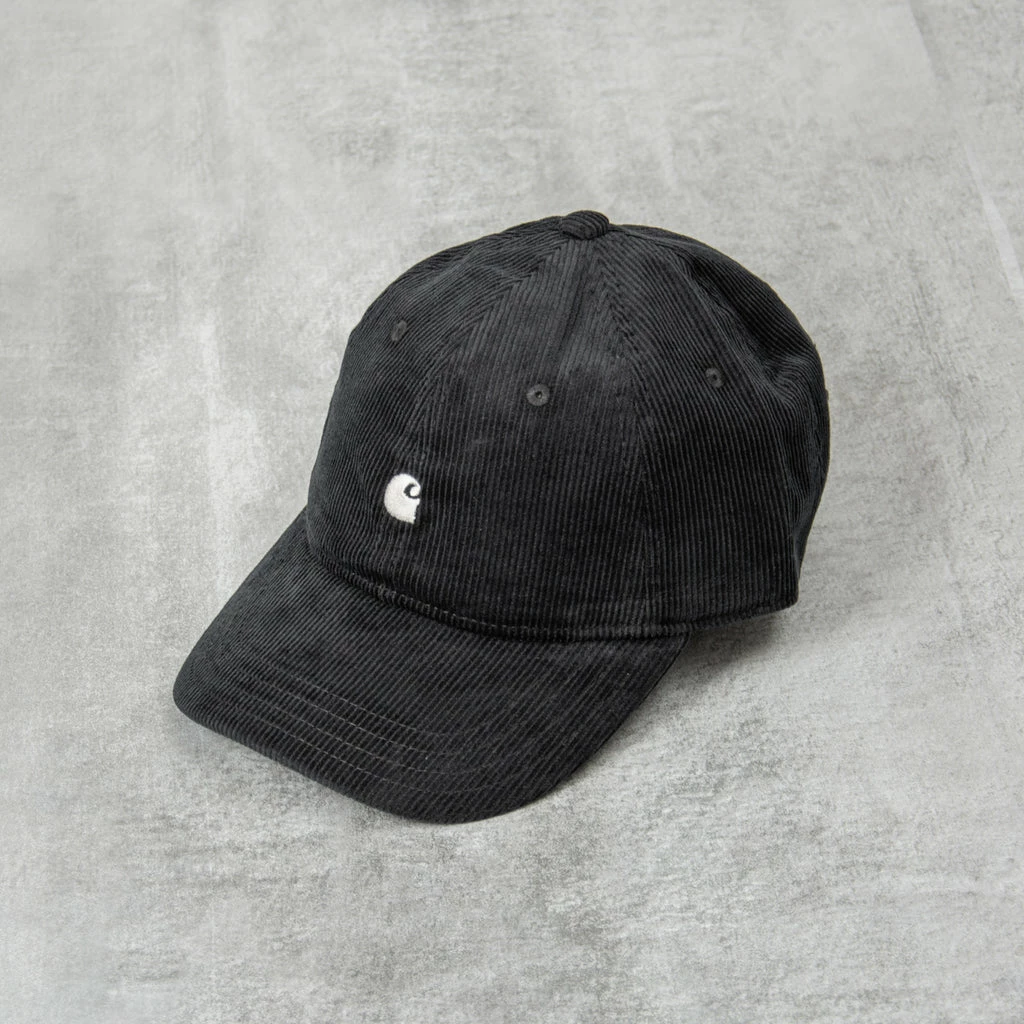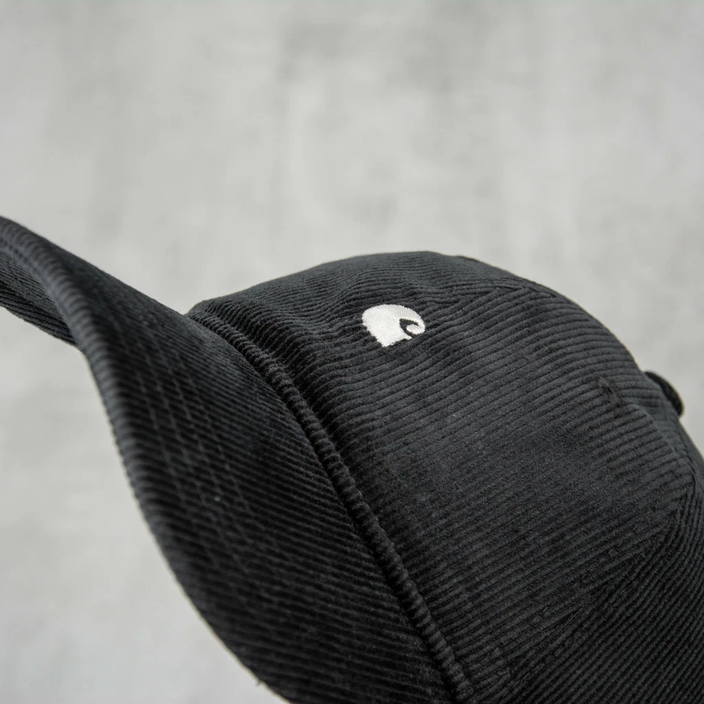 Carhartt WIP Harlem Cap Fine Cord classic 6 panel cap with adjustable back strap and embroidered Carhartt logo to the front. Fine Corduroy