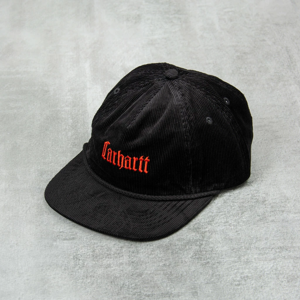 Carhartt WIP Letterman Cap Constructed from 14 wale organic cotton corduroy. The Letterman Cap is a seven-panel style with a firm, flat peak and an adjustable back strap. The style is lined at the front panel, and detailed with a dart by the crown. Logo embroidery in the Letterman Script