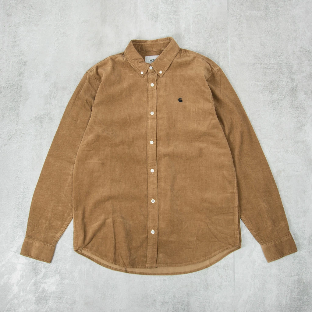 The Madison Shirt is a regular fit Corduroy shirt with a small embroidery logo on the front chest, housed on a needle cord fabrication.