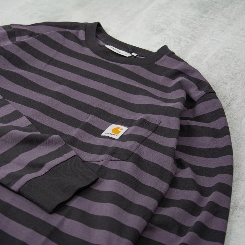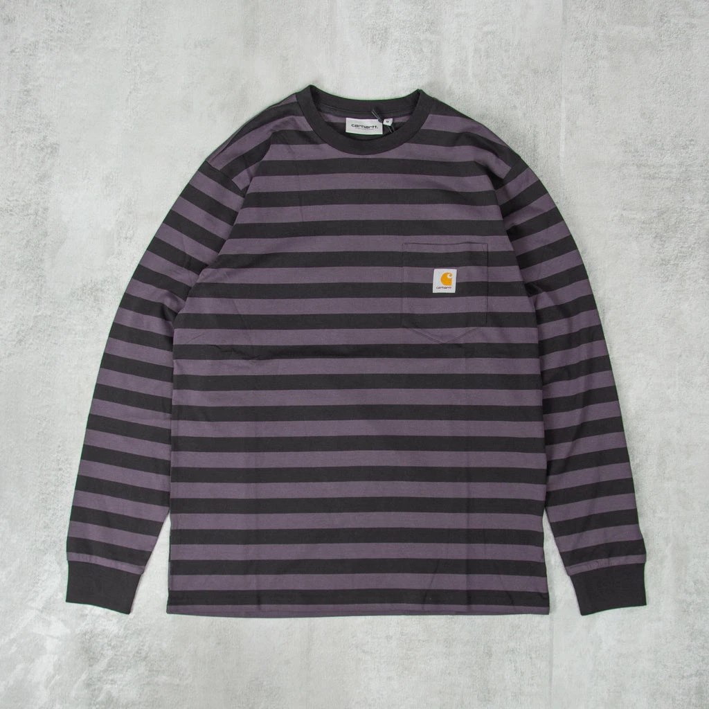 The Carhartt WIP Merrick L/S Striped Pocket Tee in Soot / Artichoke is a midweight regular fit jersey that is yarn-dyed for a deeper longer lasting colour.