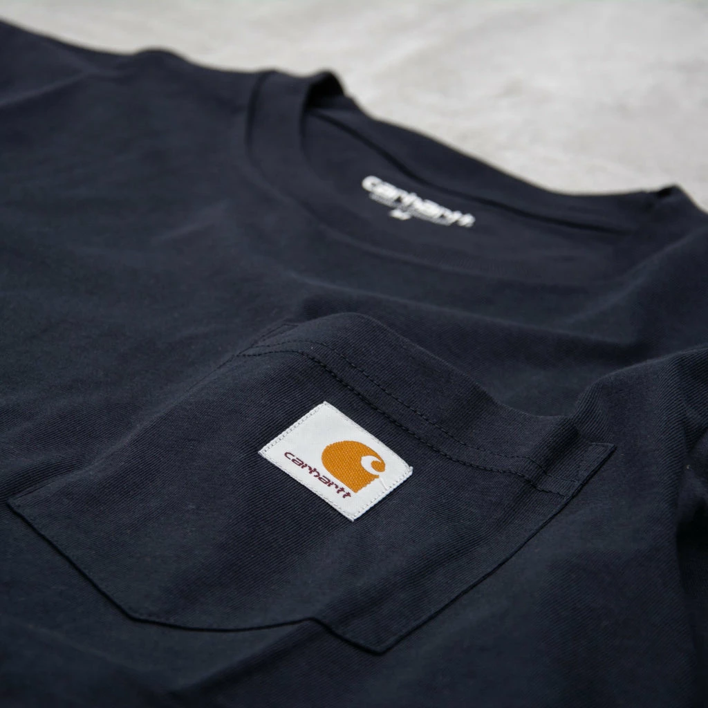 The Carhartt WIP S/S Pocket Tee is a regular fitting T-shirt made from 100% Cotton Single Jersey, 175 g/sqm. It features a front chest pocket with a classic branded label.