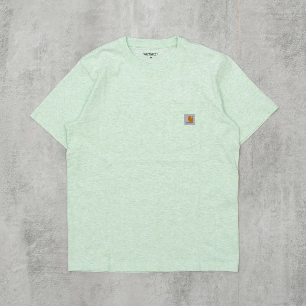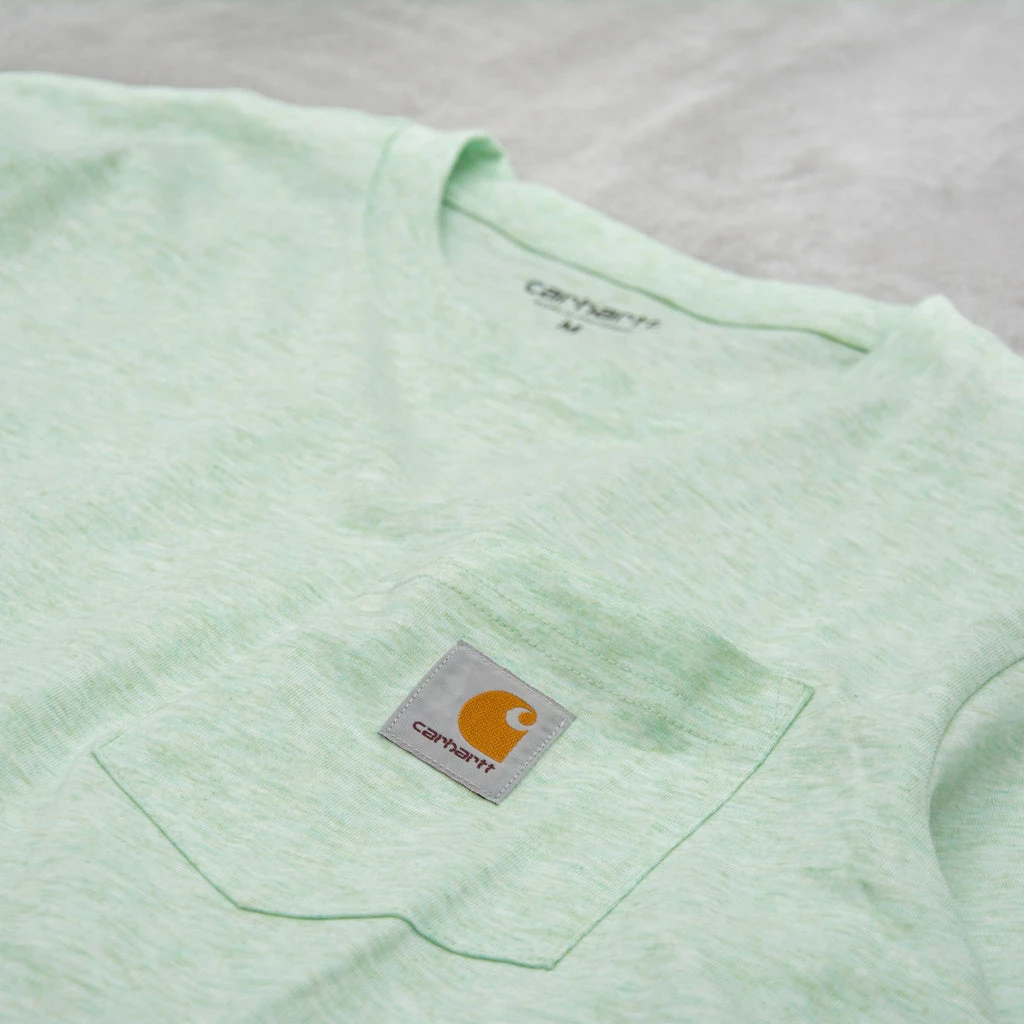 The Carhartt WIP S/S Pocket Tee is a regular fitting T-shirt made from 100% Cotton Single Jersey, 175 g/sqm. It features a front chest pocket with a classic branded label.