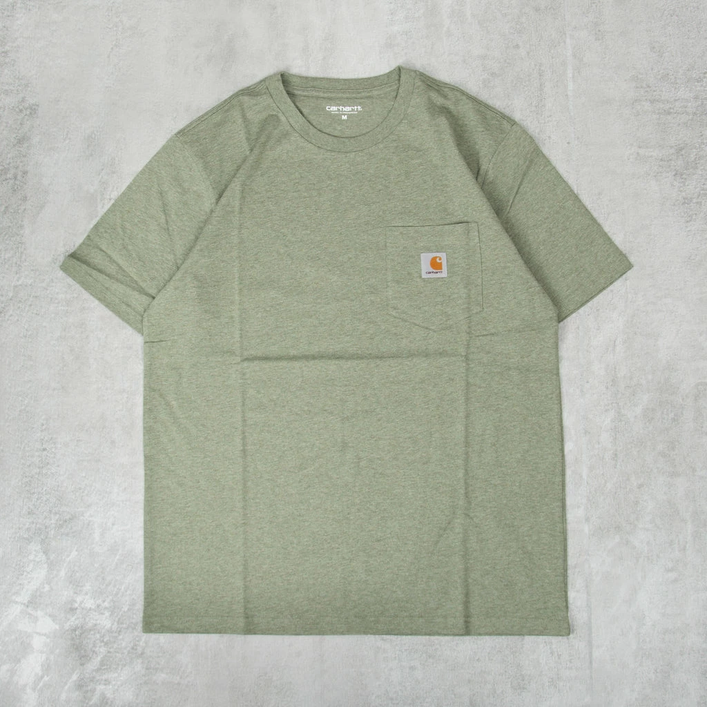 The Carhartt WIP S/S Pocket Tee is a regular fitting T-shirt made from 100% Cotton Single Jersey, 175 g/sqm. It features a front chest pocket with a classic branded label.