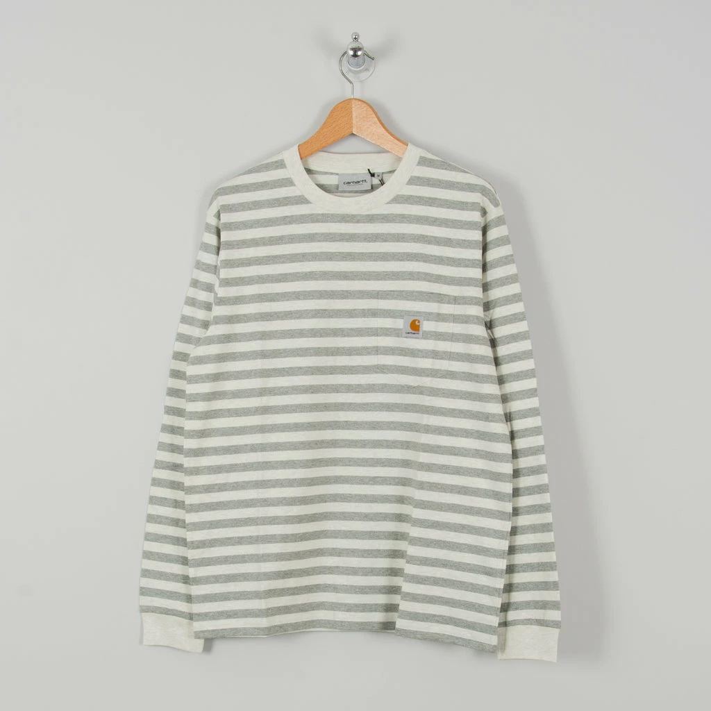 Carhartt WIP Scotty L/S Striped Pocket Tee – White Heather / Grey Heather