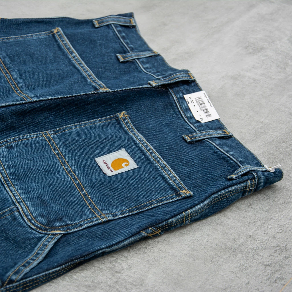 The Carhartt WIP Single Knee Denim Pant in Blue Stone Wash is a 100% organic cotton a classic work pant design from the work wear kings. The design incorporates straight leg and utilitarian pocket detailing.