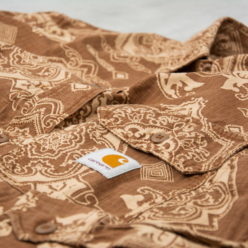 Carhartt WIP Verse L / S Shirt – the fabric has a unique worn-in character, and printed all over with the baroque-inspired Verse motif. A curved hem and a woven Square Label on the front patch pocket complete the design.