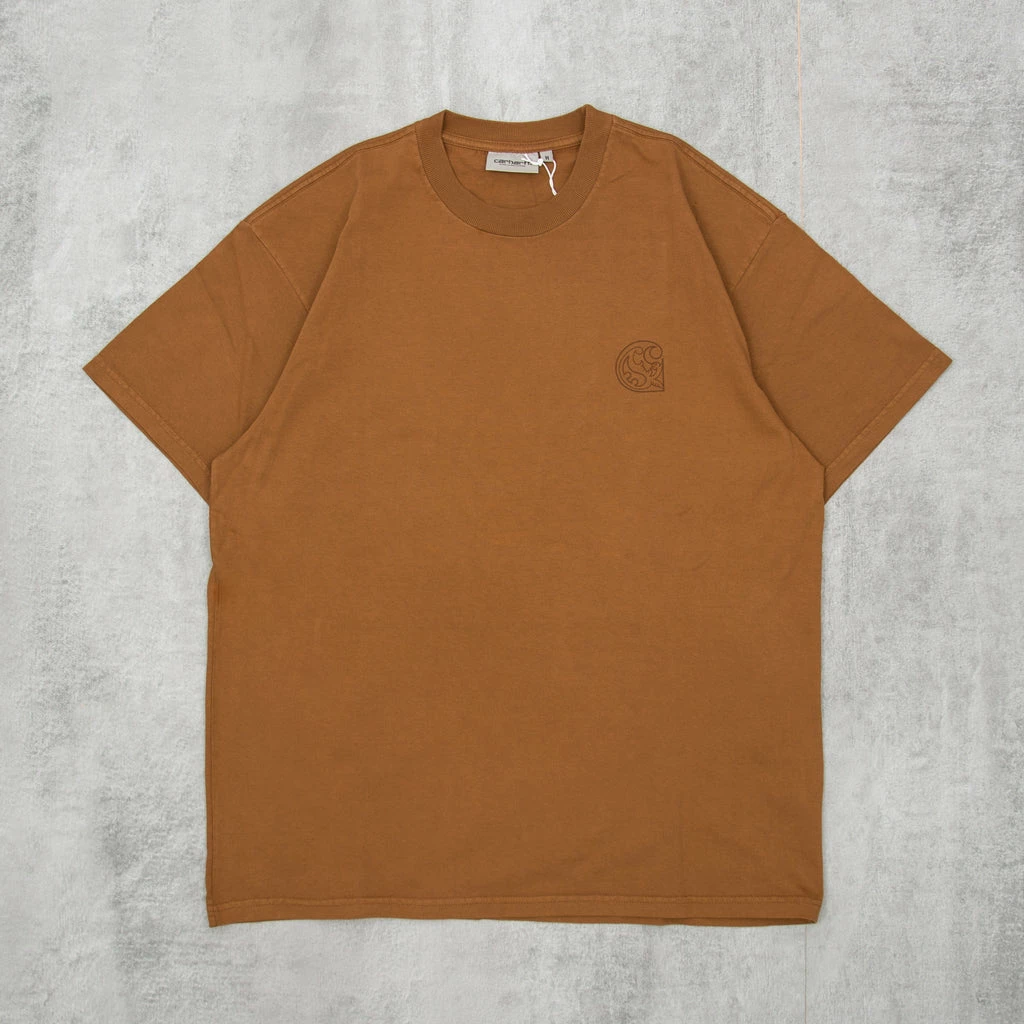 The Carhartt Verse Patch Tee in Hamilton Brown is a garment-dyed heavyweight crew tee. Large embroidered patch to the back featuring an intricate re-imagining of the Carhartt WIP ‘C’ Logo in the baroque-inspired Verse motif.