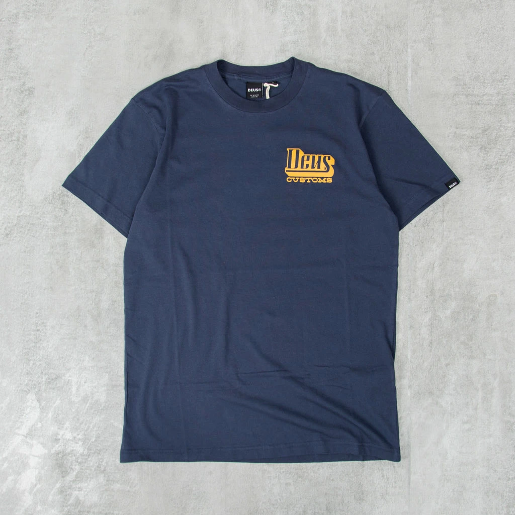 Deus Ex Machina Stripes Tee in Navy – Crafted from premium Cotton, the Deus Ex Machina Stripes Tee in Navy incorporates a Deus graphic print spanning the front and back, all in a regular fit.