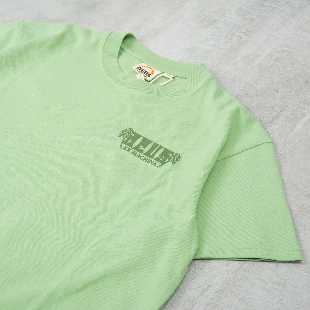 The Deus ex Machina Tranquility Tee in Fair Green is a heavy weight regular fit tee featuring a Venic Beach Surfboard graphic to the rear.