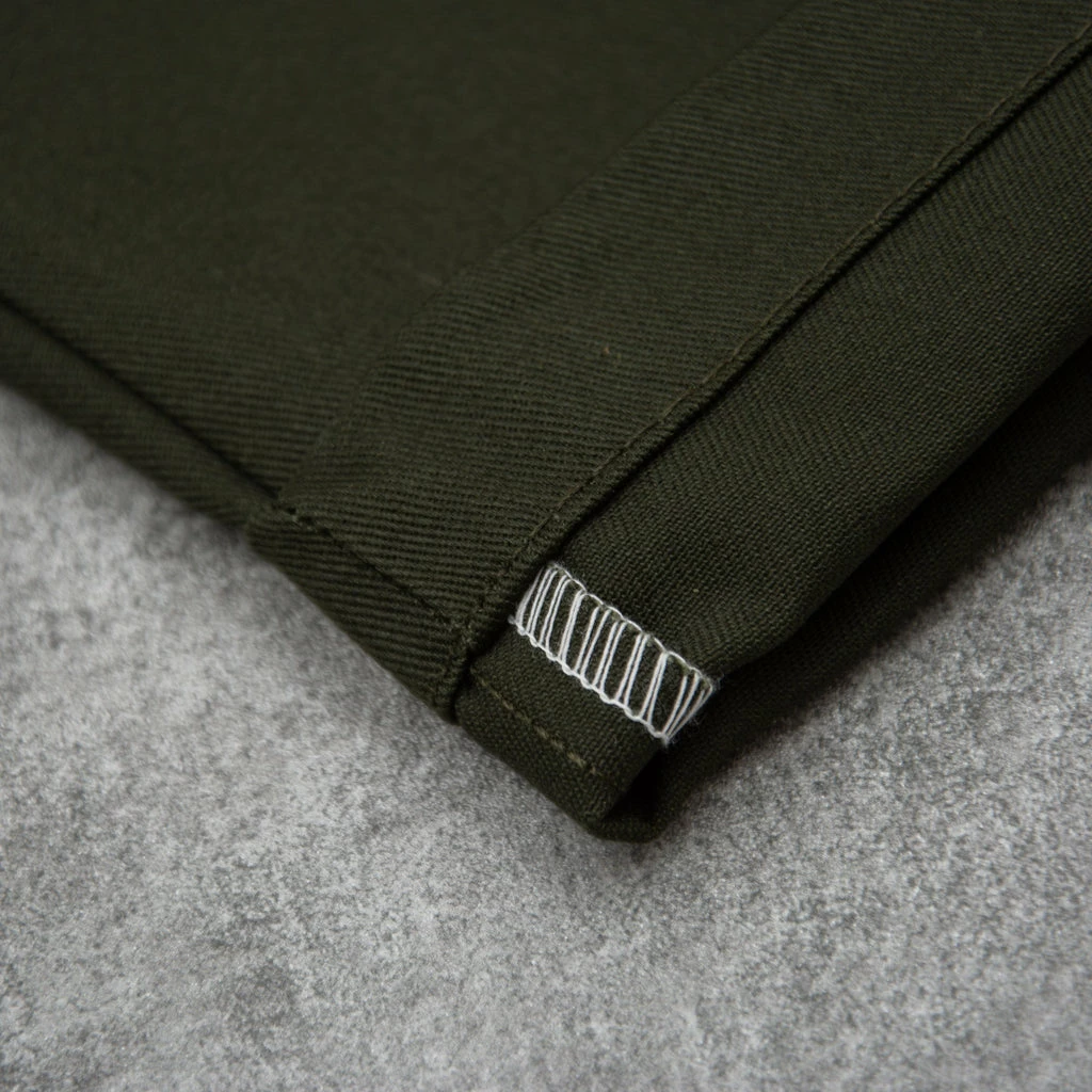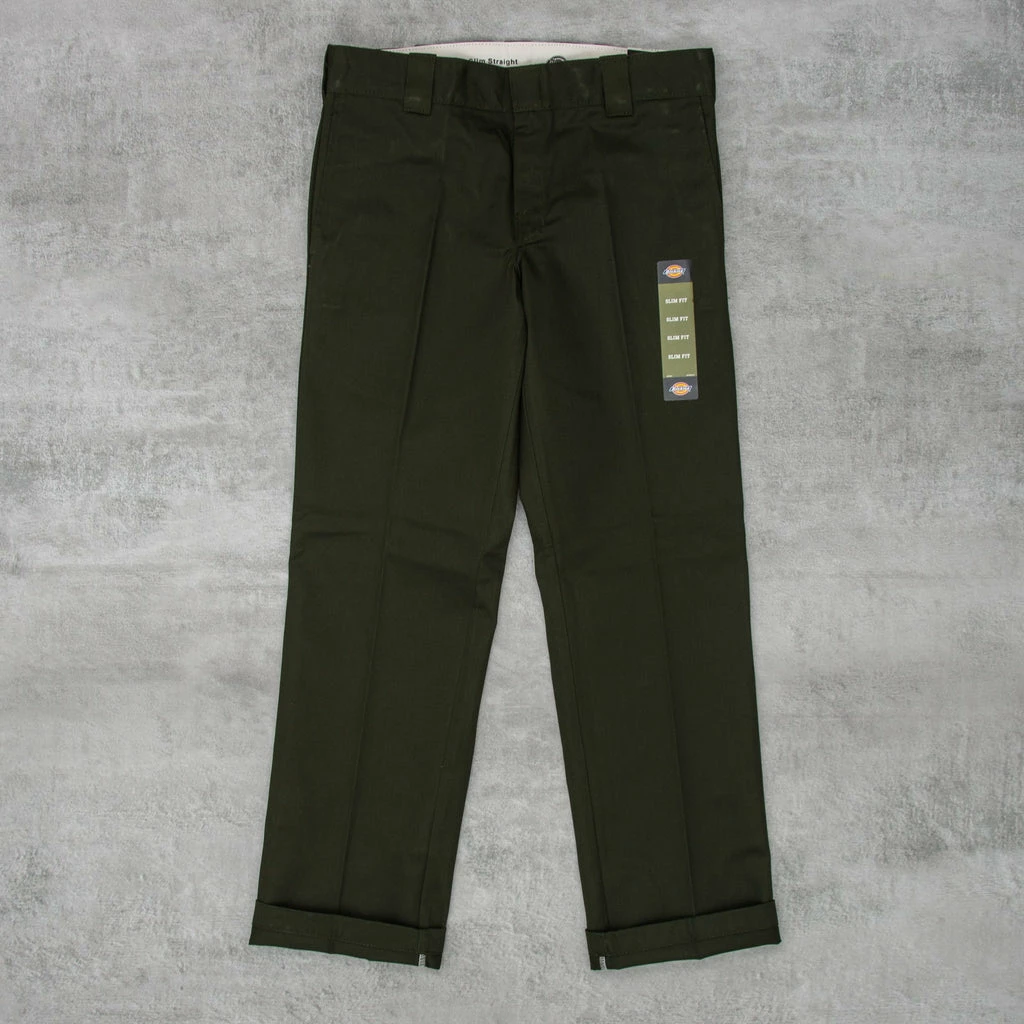 The 873 Straight Work Pants a men’s slim straight fit regular waist work pant made from 65% polyester, 35% cotton, twill 8.5oz, they feature Dickies Stain release &Permanent crease, the fit is Lower rise, Sits slightly below the waist with longer tunnel belt loops.