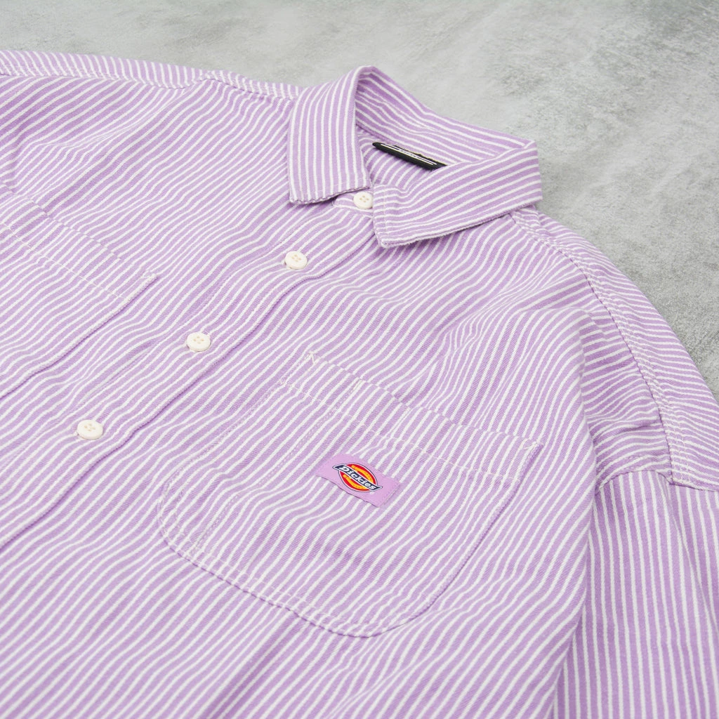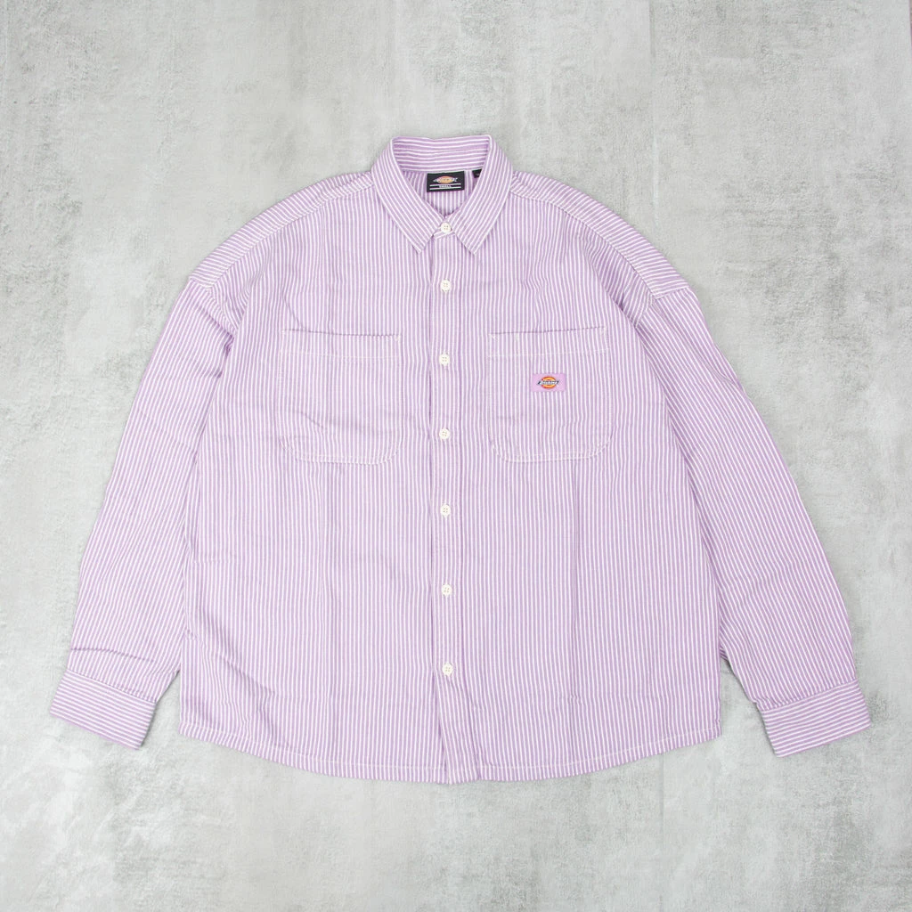 The Dickies Hickory Long Sleeve in Purple Rose Offers a relaxed fit workshirt style in a soft and breezy cotton canvas cut.