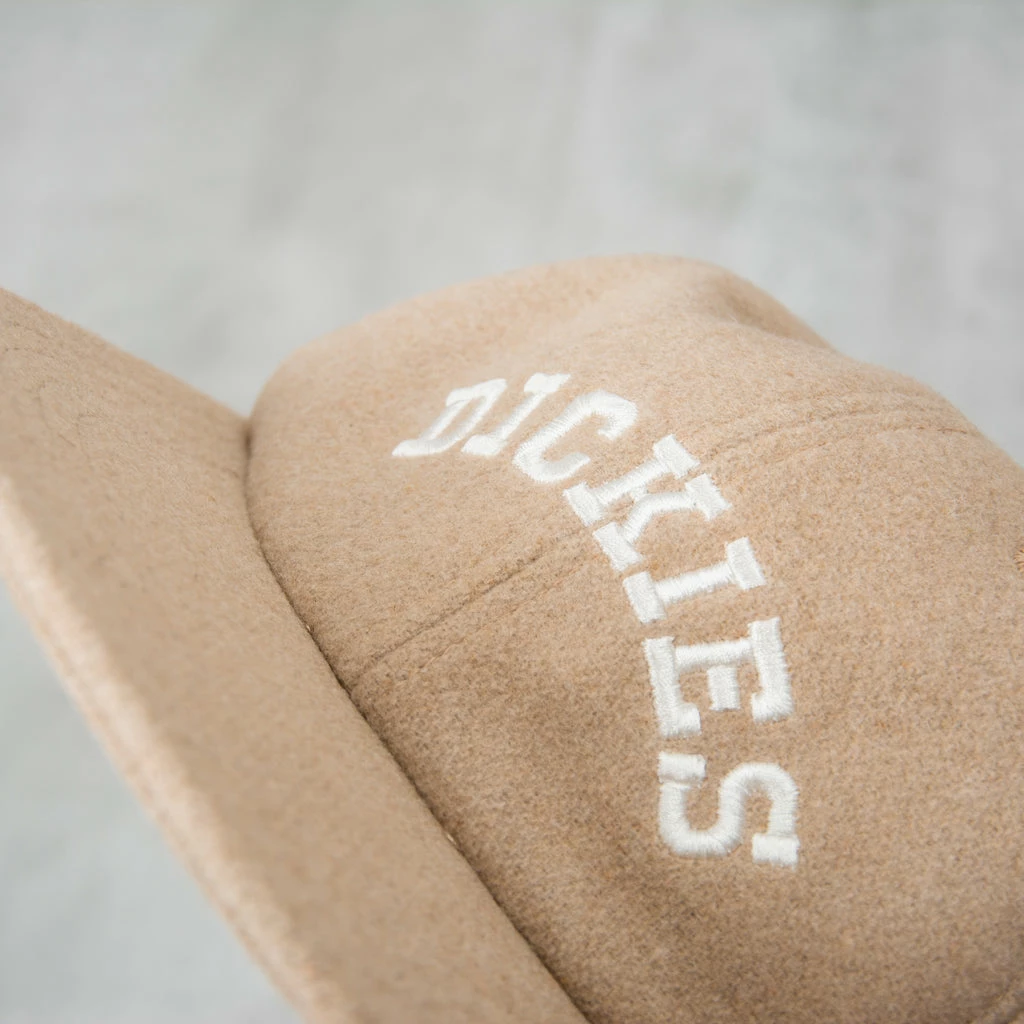 The Dickies West Vale is a classic 6 panel low profile cap featuring an embroidered Dickies logo on the front of the cap, with a strap back closure. Made of a polyester blend.