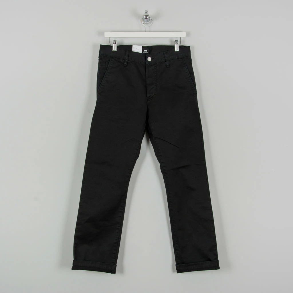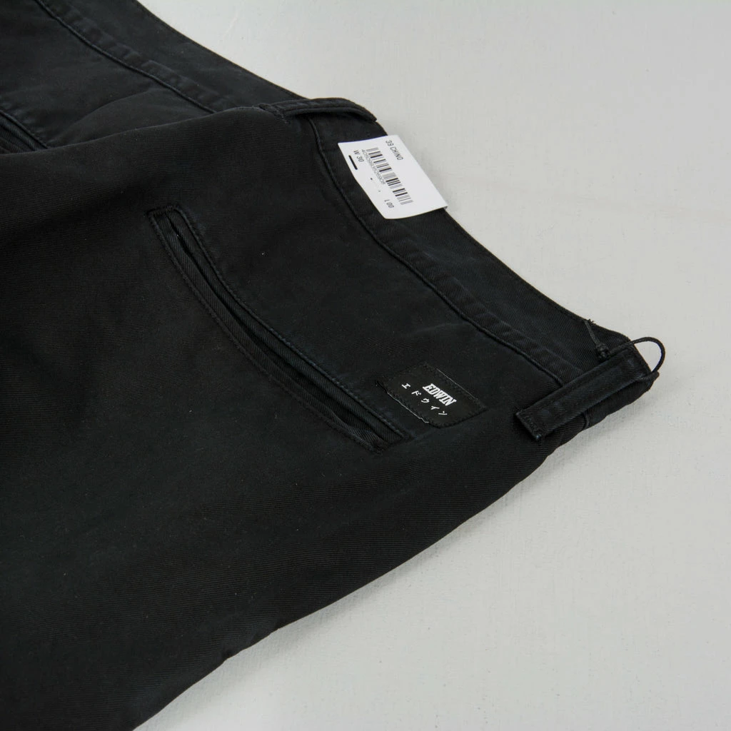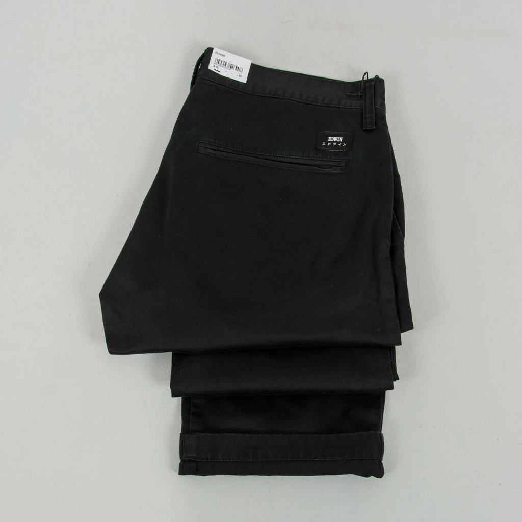 The Edwin 39 Chino in Black is a compact twill pant in a 9oz fabric. A regular loose fitting mid rise design, the garment dyed black finish is sure to age well with every wear. The leg length is cut a standardised length.