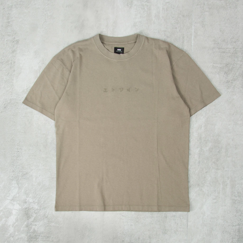 Edwin Katakana Embroidery Tee - minimalist styling with this crisp tee, front tonal Katakana-style embroidery. 100% cotton that’s cut to a slightly relaxed fit .