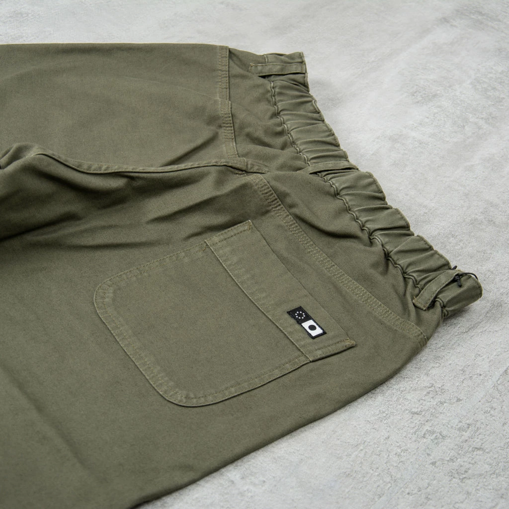 Edwin Labour Dart Pant A re-updated silhouette of Edwin’s Labour trouser in a slightly oversized Fatigue Pant, made from 100% cotton back sateen. Rear elasticated waistband with belt loops, 2 side entry front pockets, single rear pocket with woven label detail and a small stitch taper to the ankle for added taper.