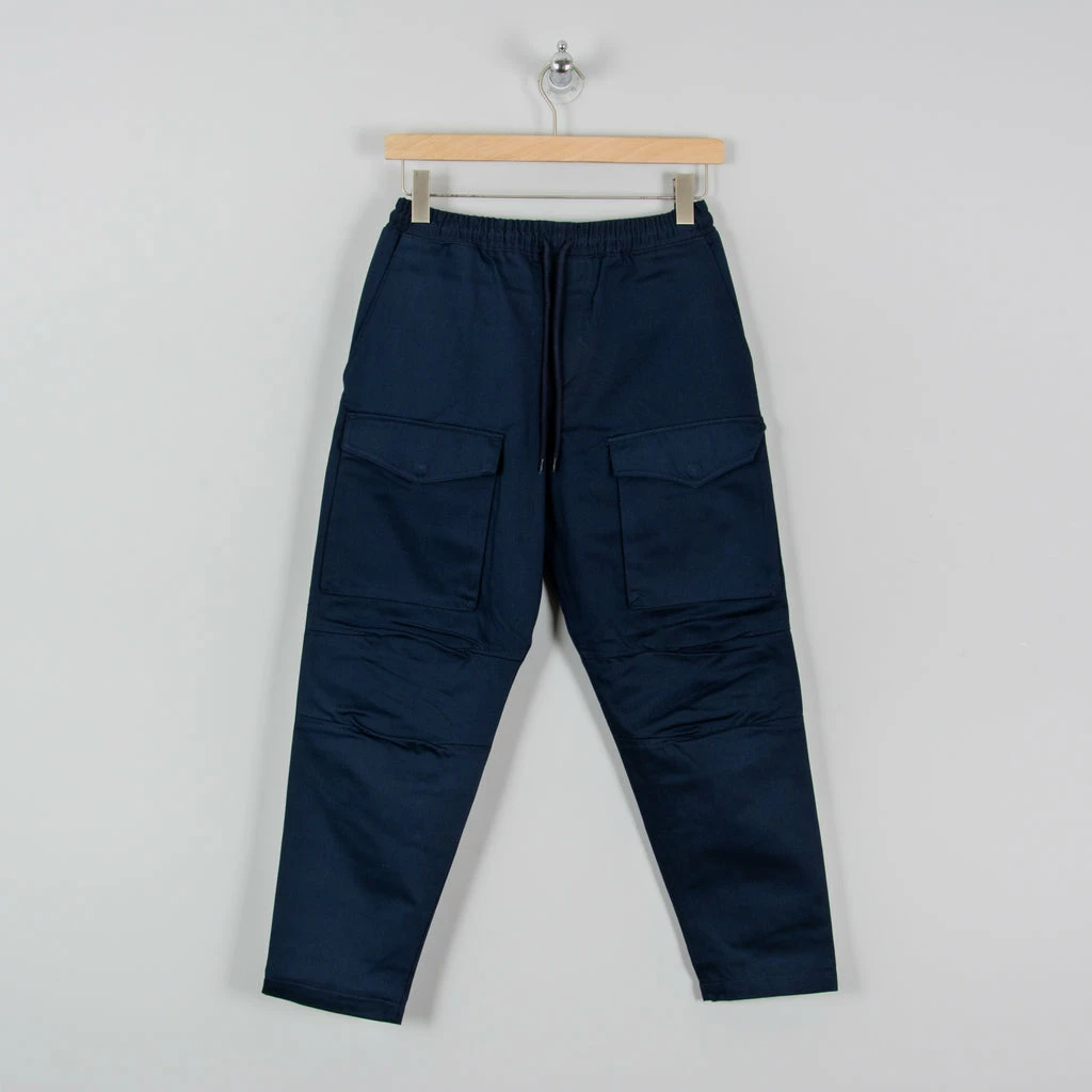 Edwin Manoeuvre Pant Made from durable cotton twill, this navy pair is loosely cut and styled with a drawstring waist for a casual-come-functional feel. Utility-inspired, they’re fitted with a multitude of spacious pockets, ideal for all your day and night time manoeuvres