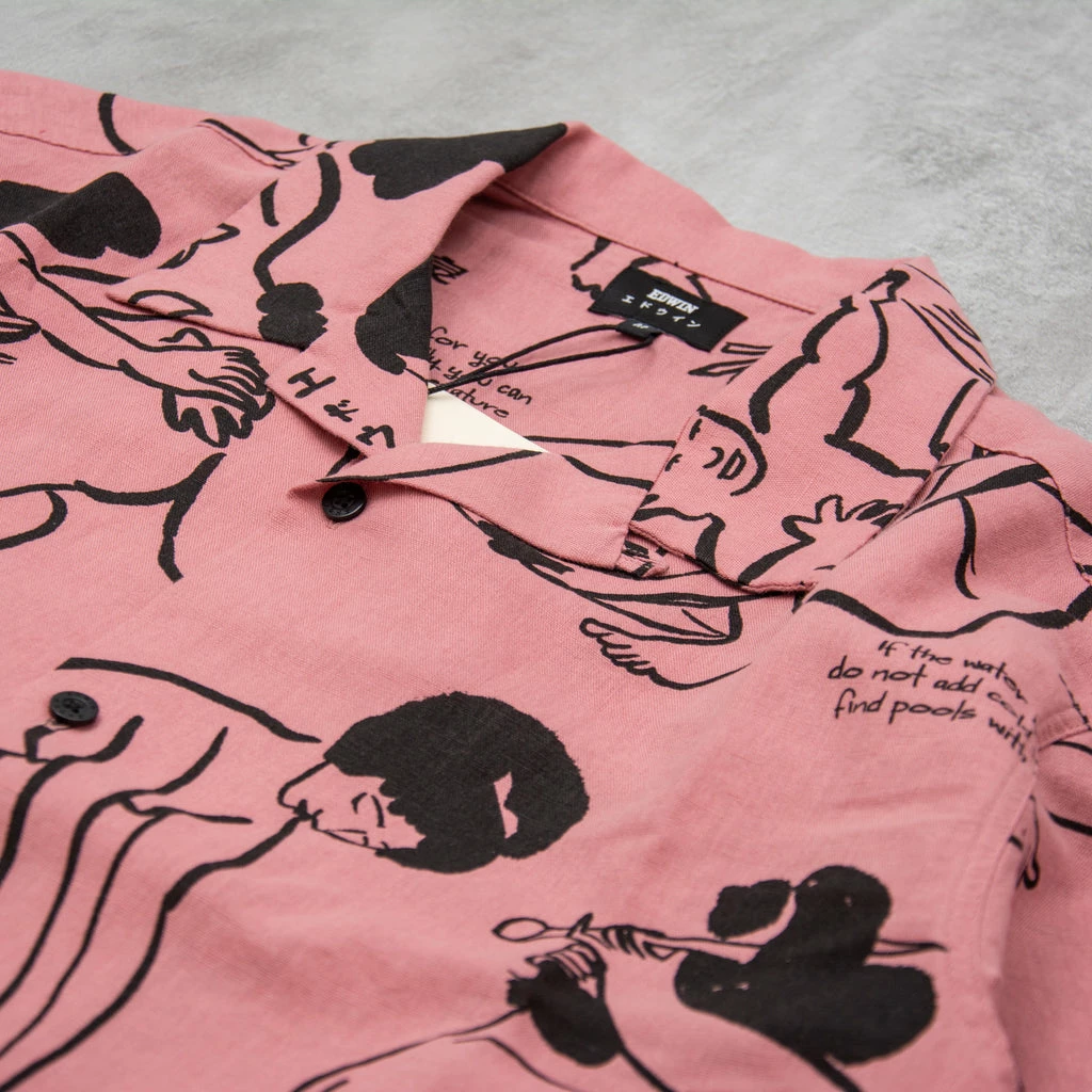 Edwin Onsen S/S Shirt made from a blended Cotton / Linen and made in Portugal, featuring a traditional Onsen (Hot Springs) print depicting an ancient Japanese meditative ritual.