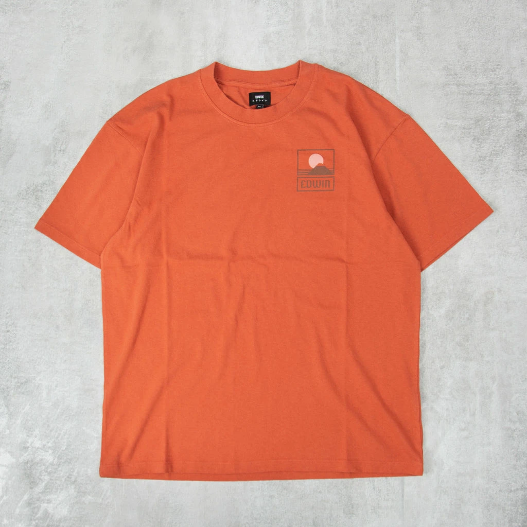 The Edwin Sunset On Mt Fuji L/S T-Shirt is a short sleeve, regular fit t-shirt that features a graphic of the sun setting over Mount Fuji…or maybe it’s the sun rising, but either way it looks smart.