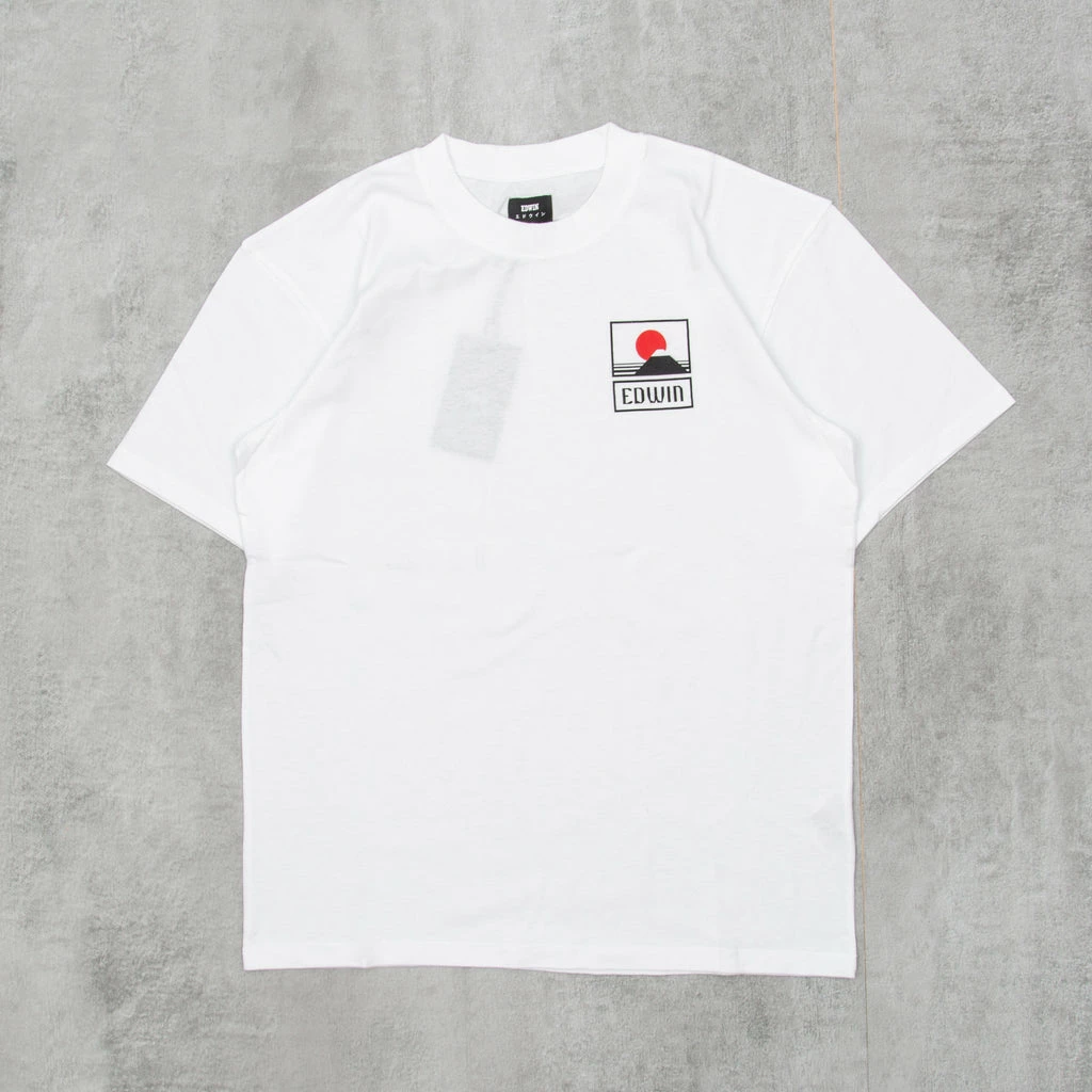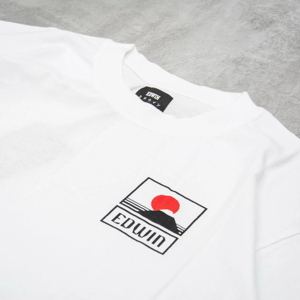 The Edwin Sunset On Mt Fuji S/S T-Shirt is a short sleeve, regular fit t-shirt that features a graphic of the sun setting over Mount Fuji…or maybe it’s the sun rising, but either way it looks smart.