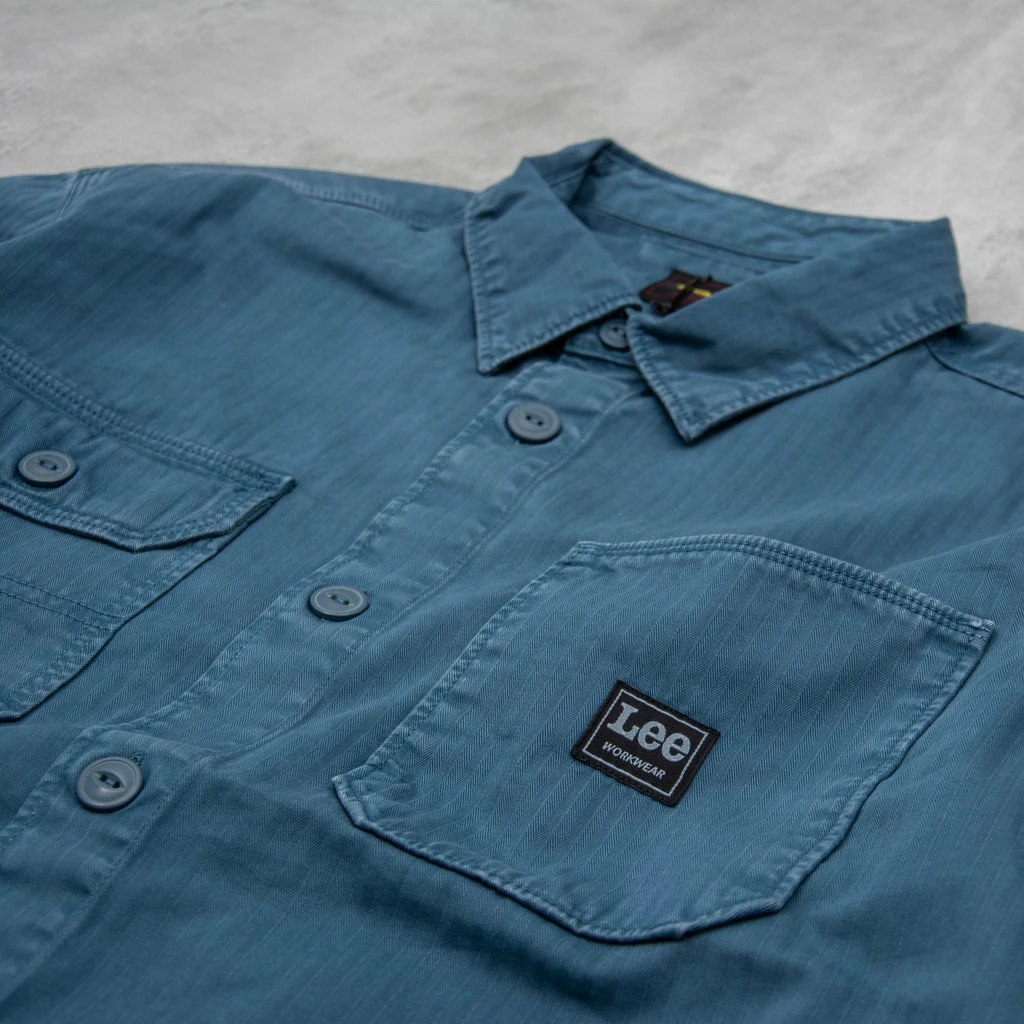Lee Box Pocket Overshirt – Modelled on the famed Loco jacket this features two chest pockets – one flapped, one flat. There is an embroidered Lee label on the left chest pocket and tortoiseshell buttons