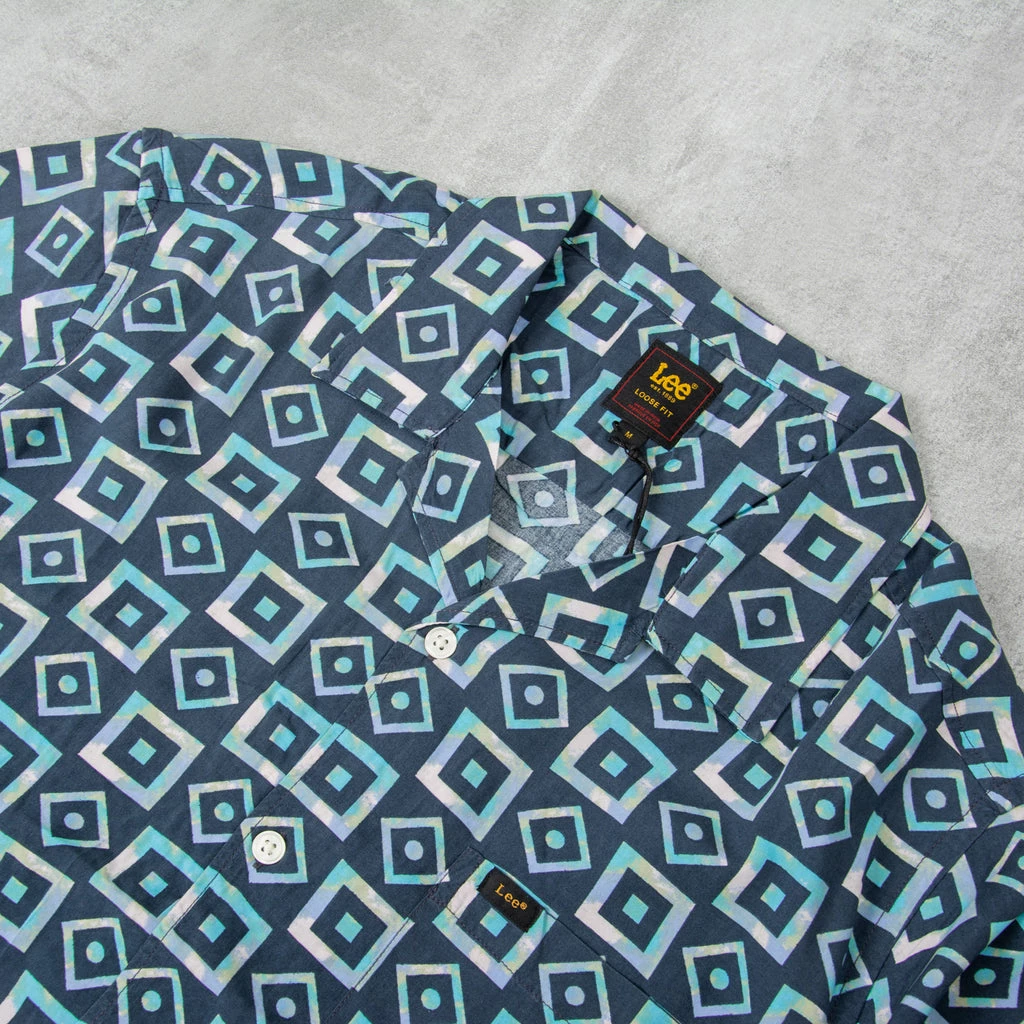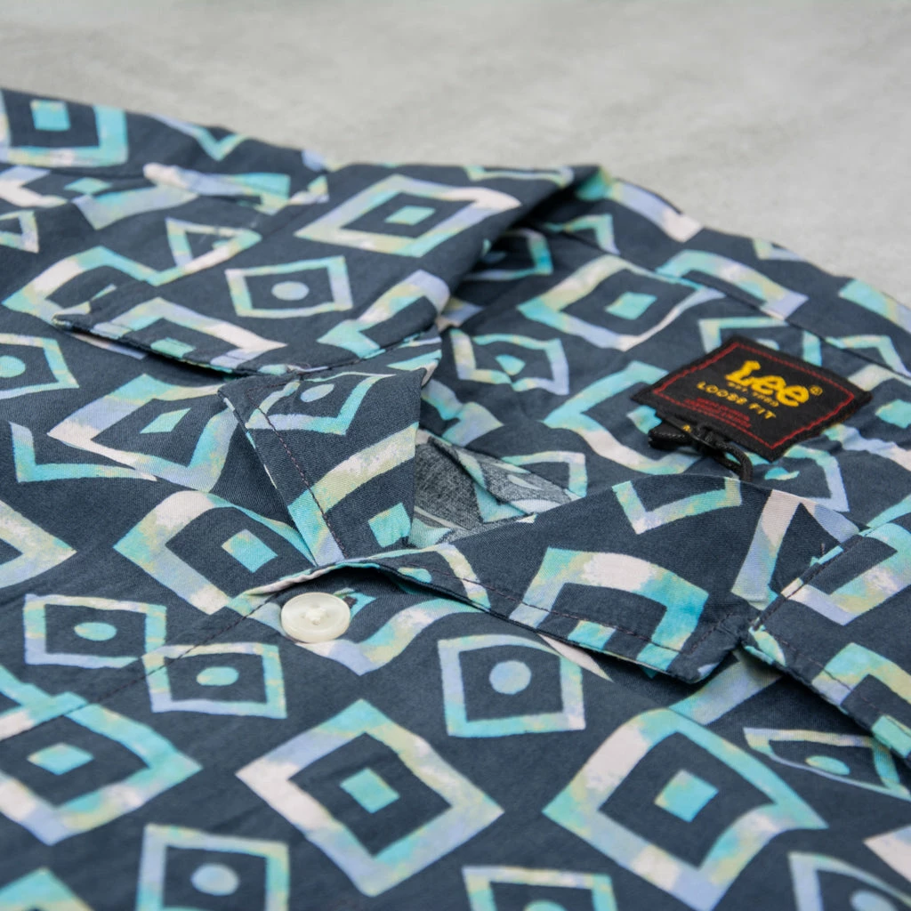 Lee Resort Shirt a relaxed fit in an abstract geometric design featuring an open collar and straight hem.