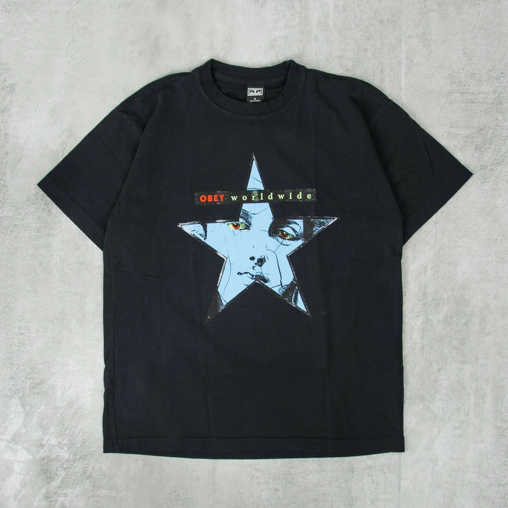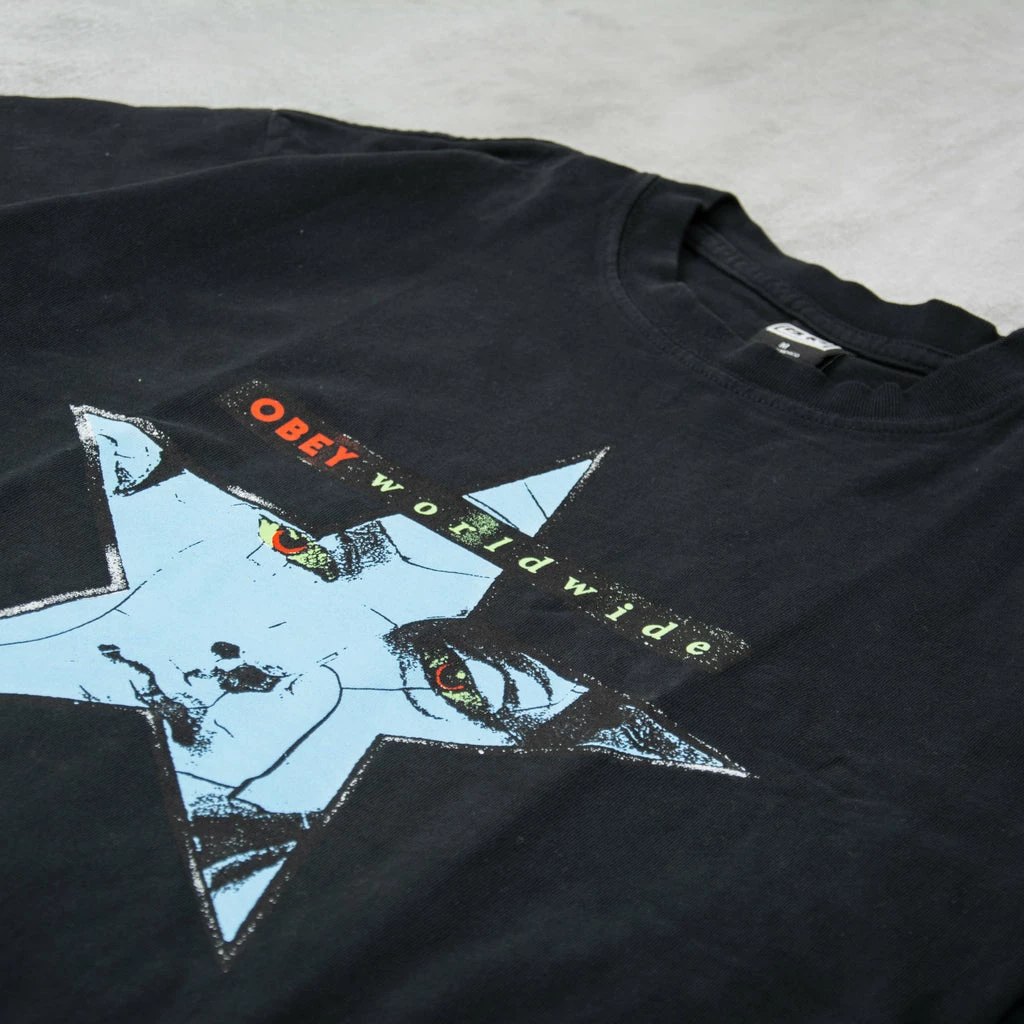 Obey Stars Begin Falling – garment dyed in a box fit for comfort, featuring a freont and back print “the man is watchng you”