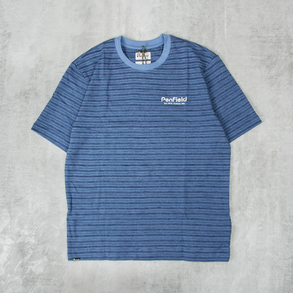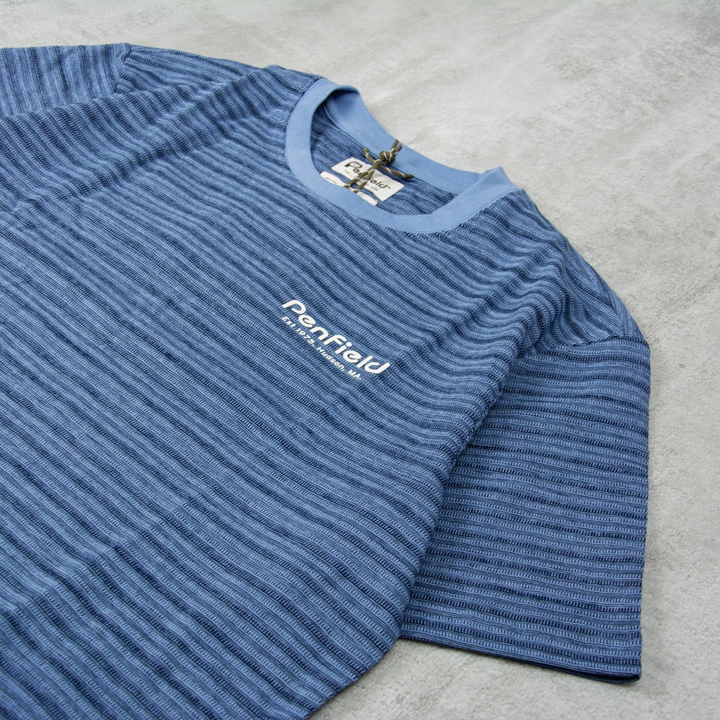 The Penfield Textured Stripe Tee crafted from 200gsm textured tonal jacquard cotton jersey, making it breathable and comfortable to wear. It offers a relaxed fit design with a Penfield Hudson script graphic at chest. Finished with rib trim at neck and a woven tab label.