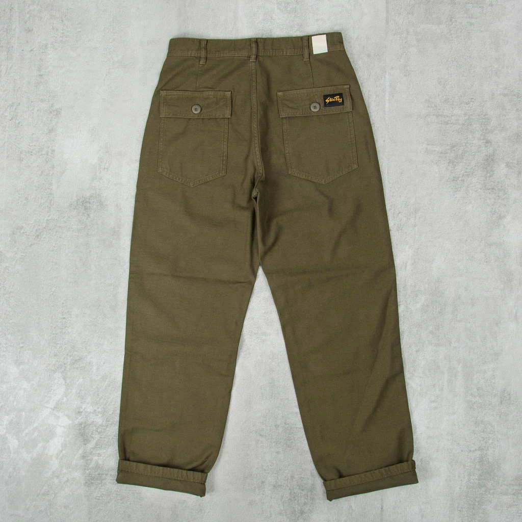 Stan Ray Fat Pant is a slightly oversized relaxed fitting varient of the Fatigue Pant, a hardwearing construction with double chain stitching and flat-felled seams, a zip fly and 2 back pockets with a Stan Ray woven label.